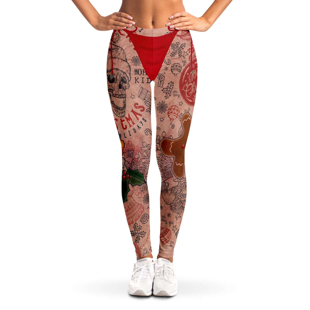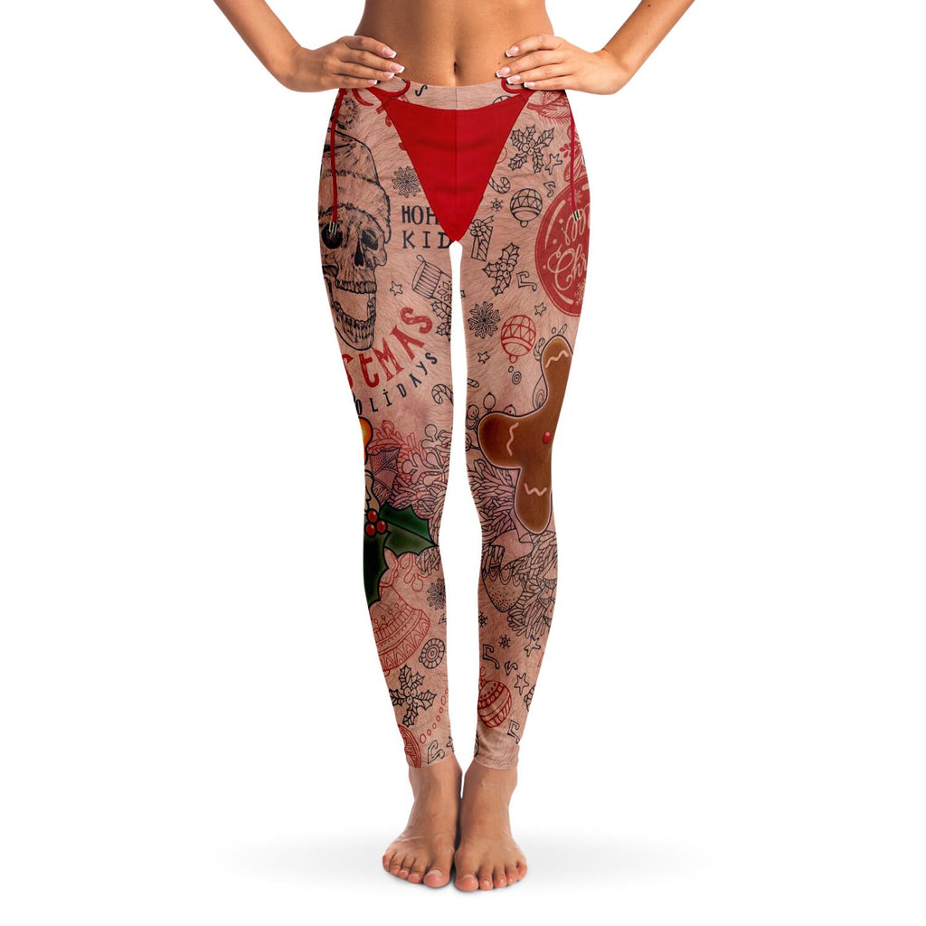 Funny Hairy Xmas Legs Premium Leggings - Christmas Leggings AOP