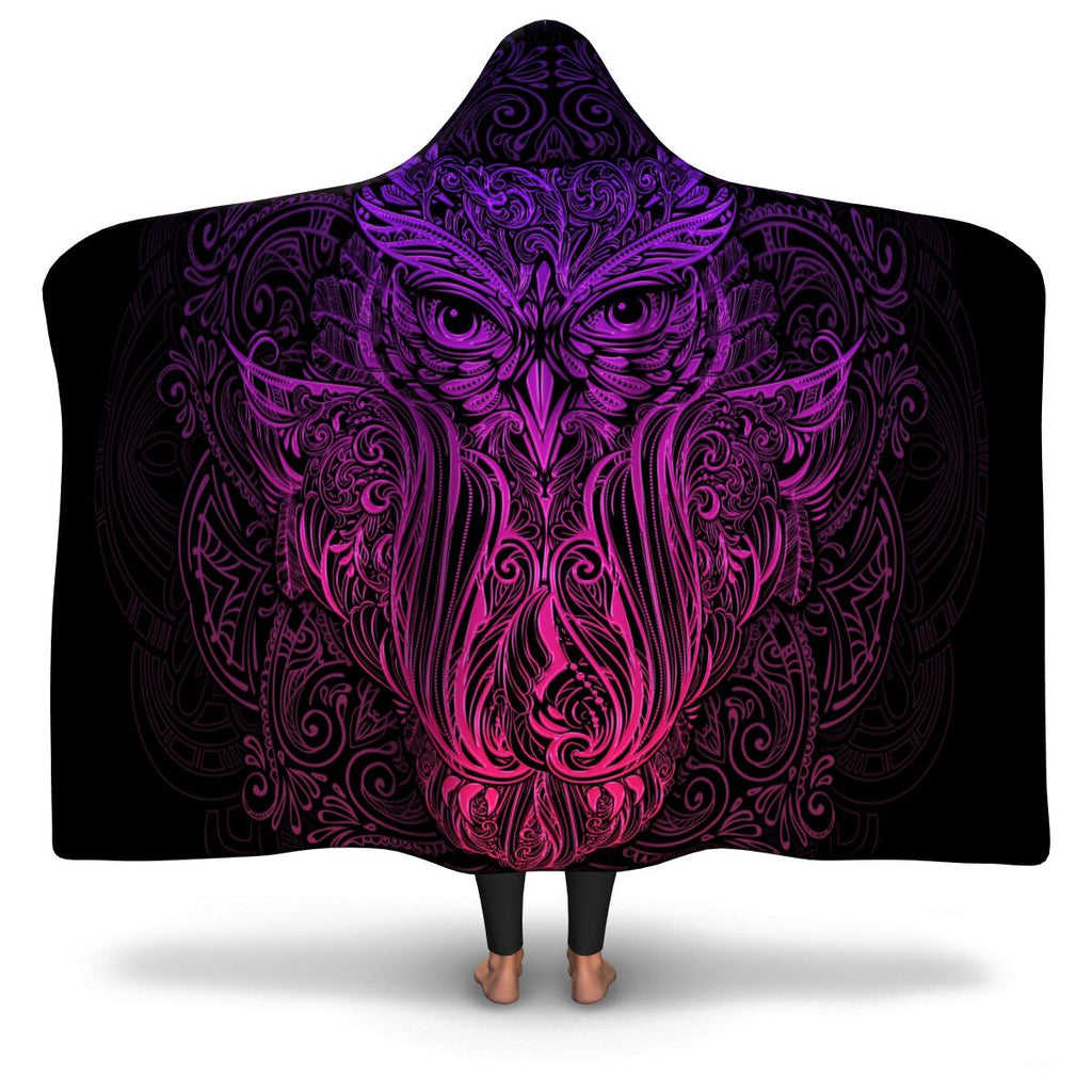 Ornamental Owl Hooded Blanket AOP - Christmas/Halloween Gift.