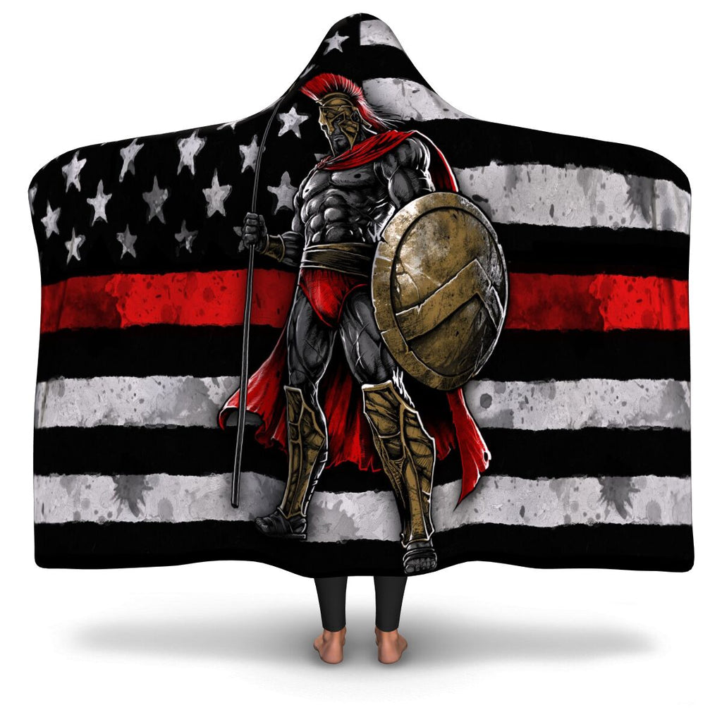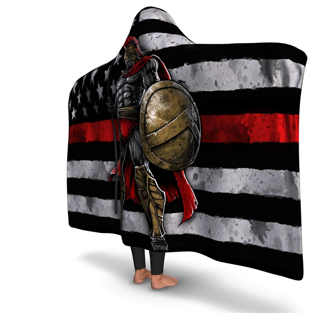 Red Line Warrior Hooded Blanket AOP - Christmas/Halloween Gift for Firefighters.